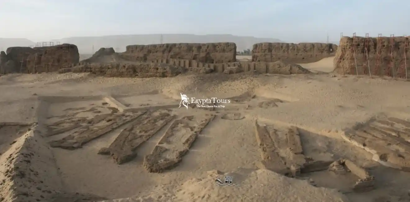 Excavations at the site started in 2000 near a Second Dynasty building called Shunet El Zebib. Archaeologists found fourteen boats buried in the ground, each surrounded by brick walls shaped like the outline of a ship.