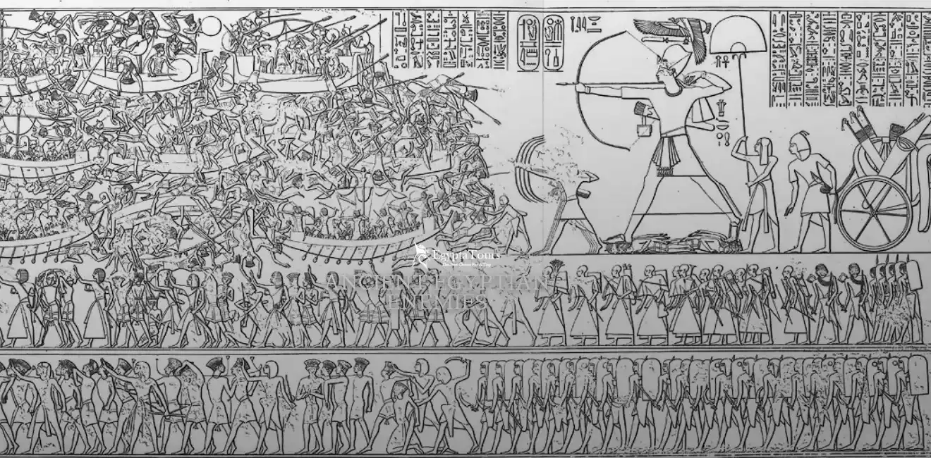 Their famous confrontations with Ramesses III at the Battle of the Delta and Djahy were decisive and were depicted in meticulous detail on the walls of his temple at Mut.
