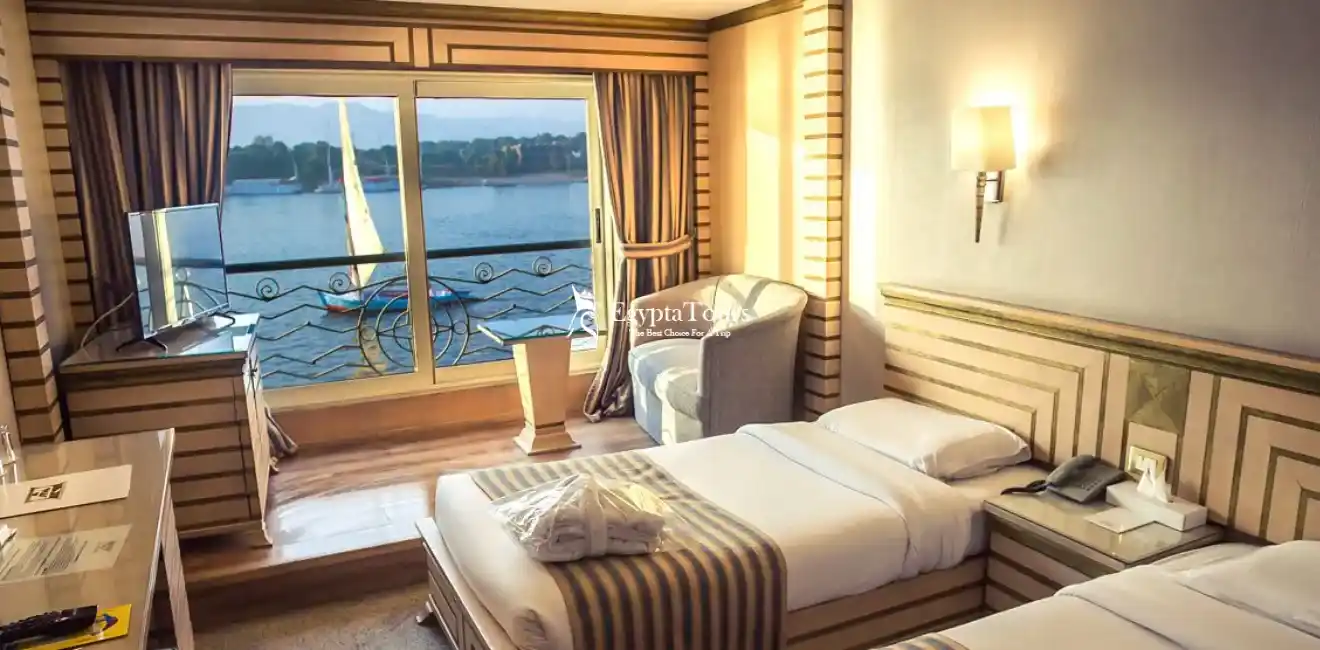 The amazing rooms of the Nile Cruise are specially designed to provide comfort and relaxation for travelers during the trip. The rooms are different in size and design according to the category, with different beds ranging from suites to small rooms to double beds, with elegant furniture and spacious wardrobes that adorn the rooms.