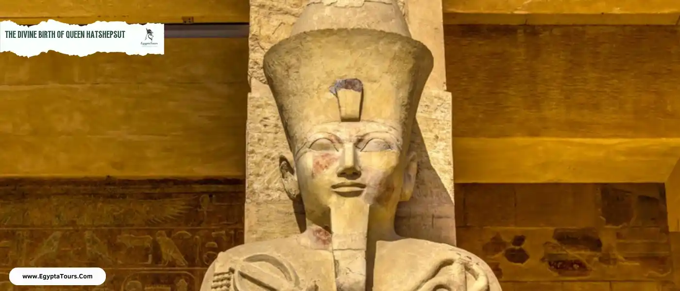 The myth of the divine birth of Hatshepsut is that the god Amun-Ra met with the goddesses of glory and destiny to express his great desire to send a divine offspring to rule the land of Egypt from the womb of a human woman.