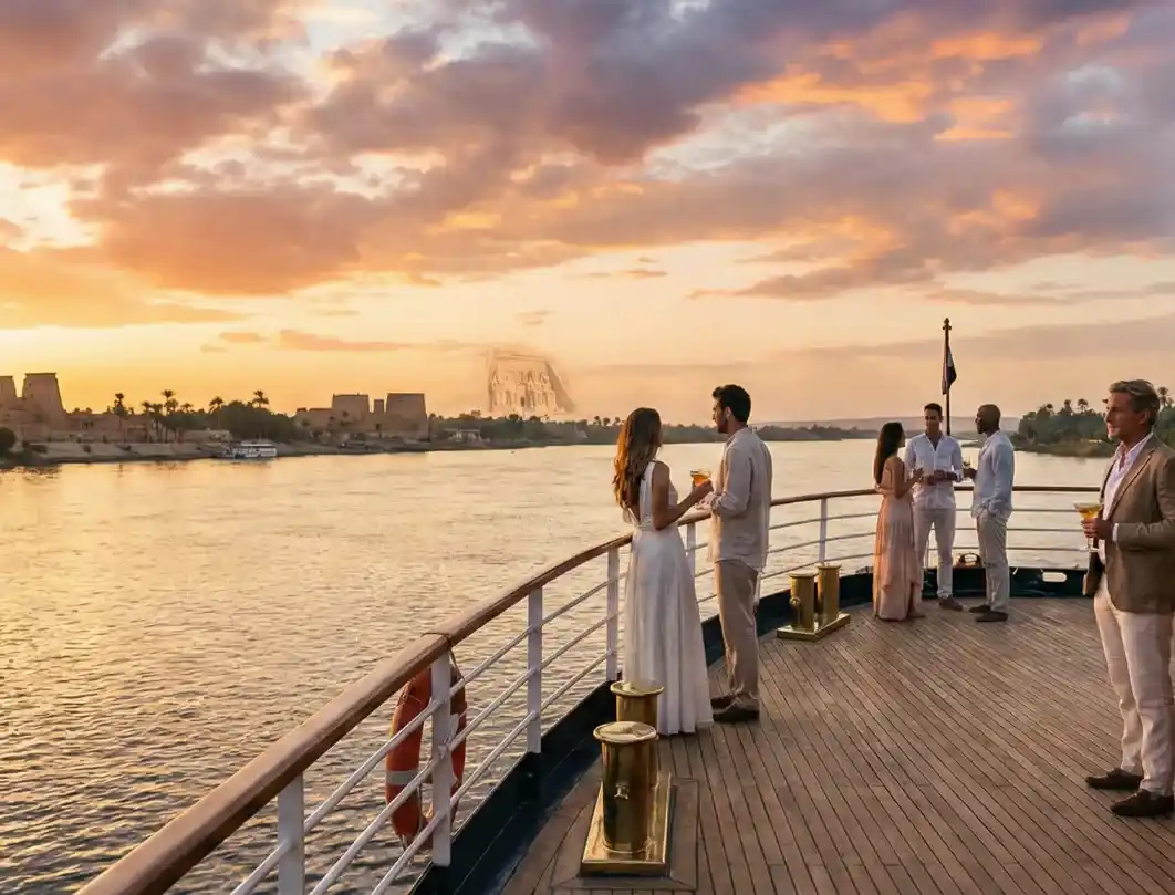 Your day begins before sunrise as the magical colors of dawn appear over Aswan. After an early wake-up call, enjoy a light breakfast box prepared by the cruise before departing for the iconic Abu Simbel Temples—one of Egypt’s most extraordinary ancient monuments.