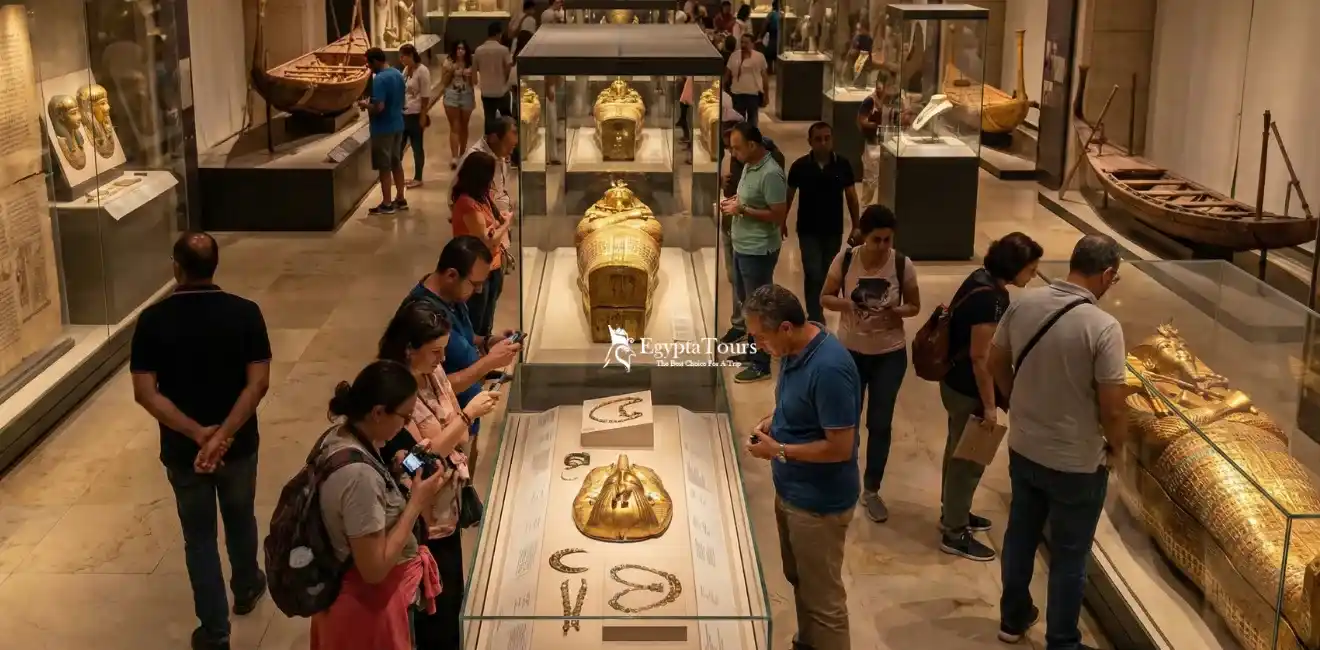 Inside the museum, you will see the Royal Mummies Hall, which is one of the most important halls in the world because it houses a large number of kings who lived for thousands of years. There, you will feel like you are walking in a special royal procession.