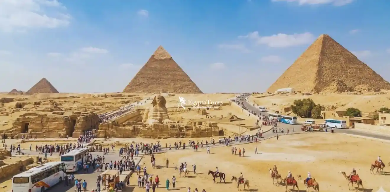 Starting the tour by visiting the Giza Pyramids and the Sphinx